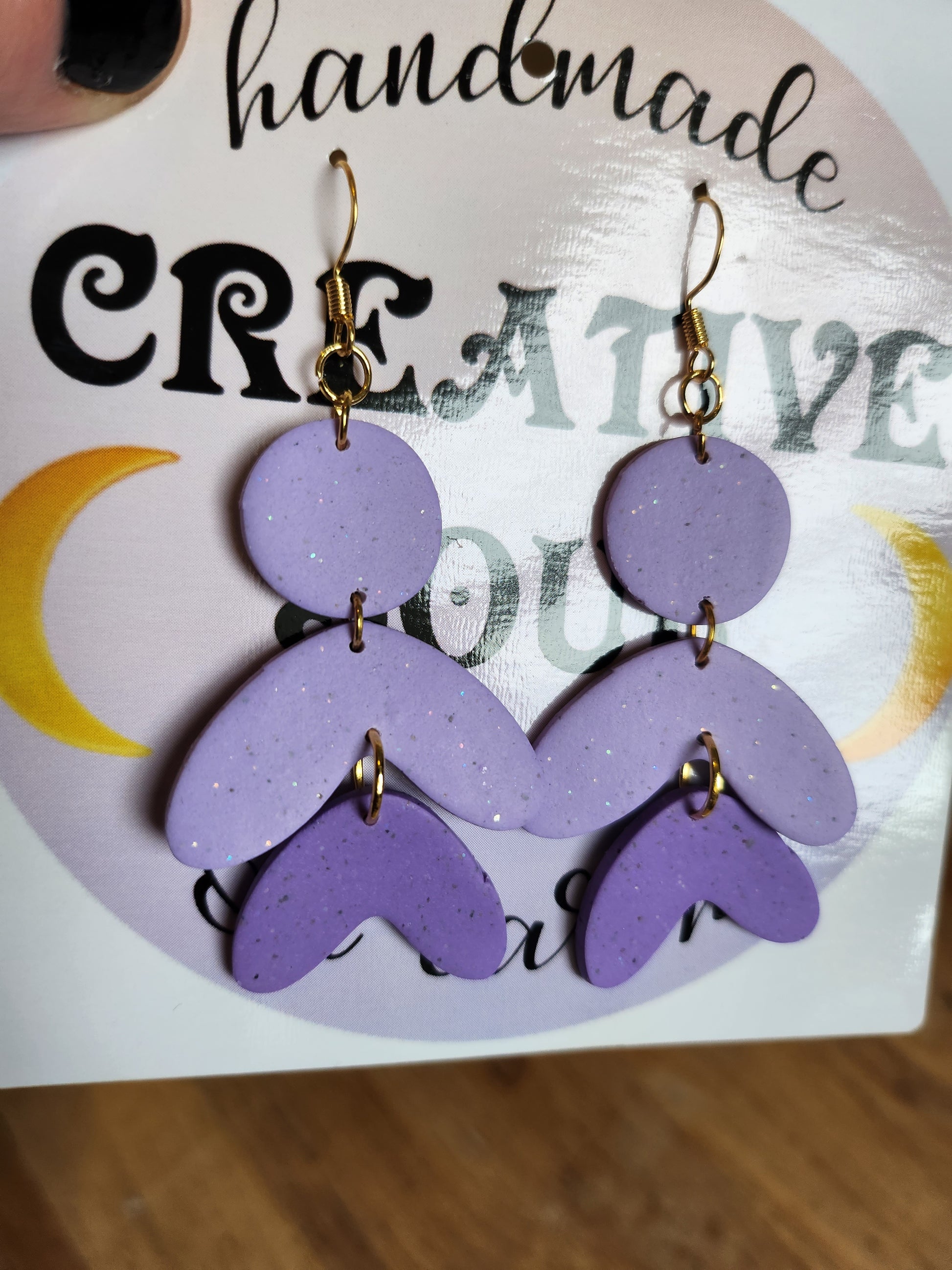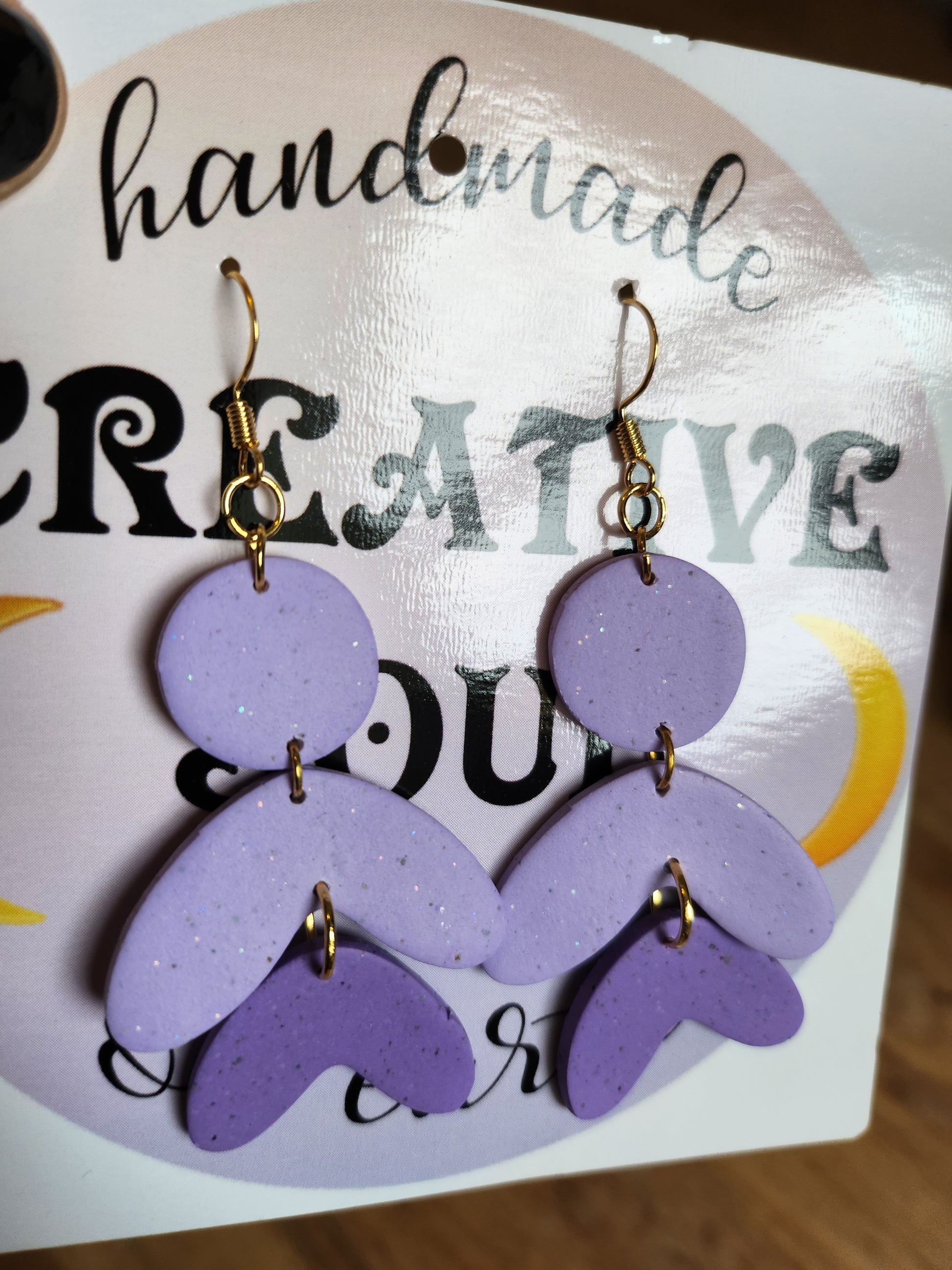 Polymer clay with sparkle. Lightweight. 18k gold hooks
